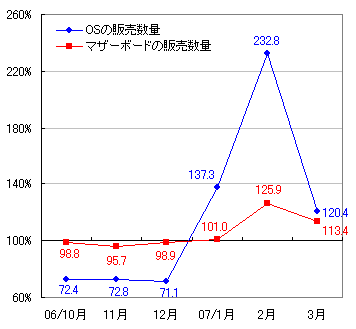 マザーボード、OSの需要曲線と、メモリのそれはほぼリンクしており、両者の相関が大きいことを物語っている。