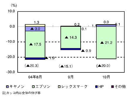 インクジェットプリンタではキヤノン、複合プリンタではエプソンが強さをみせており、両者の販売スタンスの違いが反映された動きとなっている。