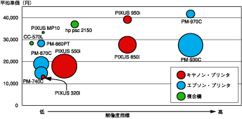 ところで、インクジェットの売れ筋製品を、印刷解像度と平均単価でマッピングすると、一連の複合機は、ダイレクトプリントモデルと同じようなエリアに位置する(図2)。最新のスタンダードクラスのプリントエンジン、カードスロットを搭載し、使い勝手に一工夫あれば、ダイレクトプリンタモデルに対するニーズも吸引できると思われる。